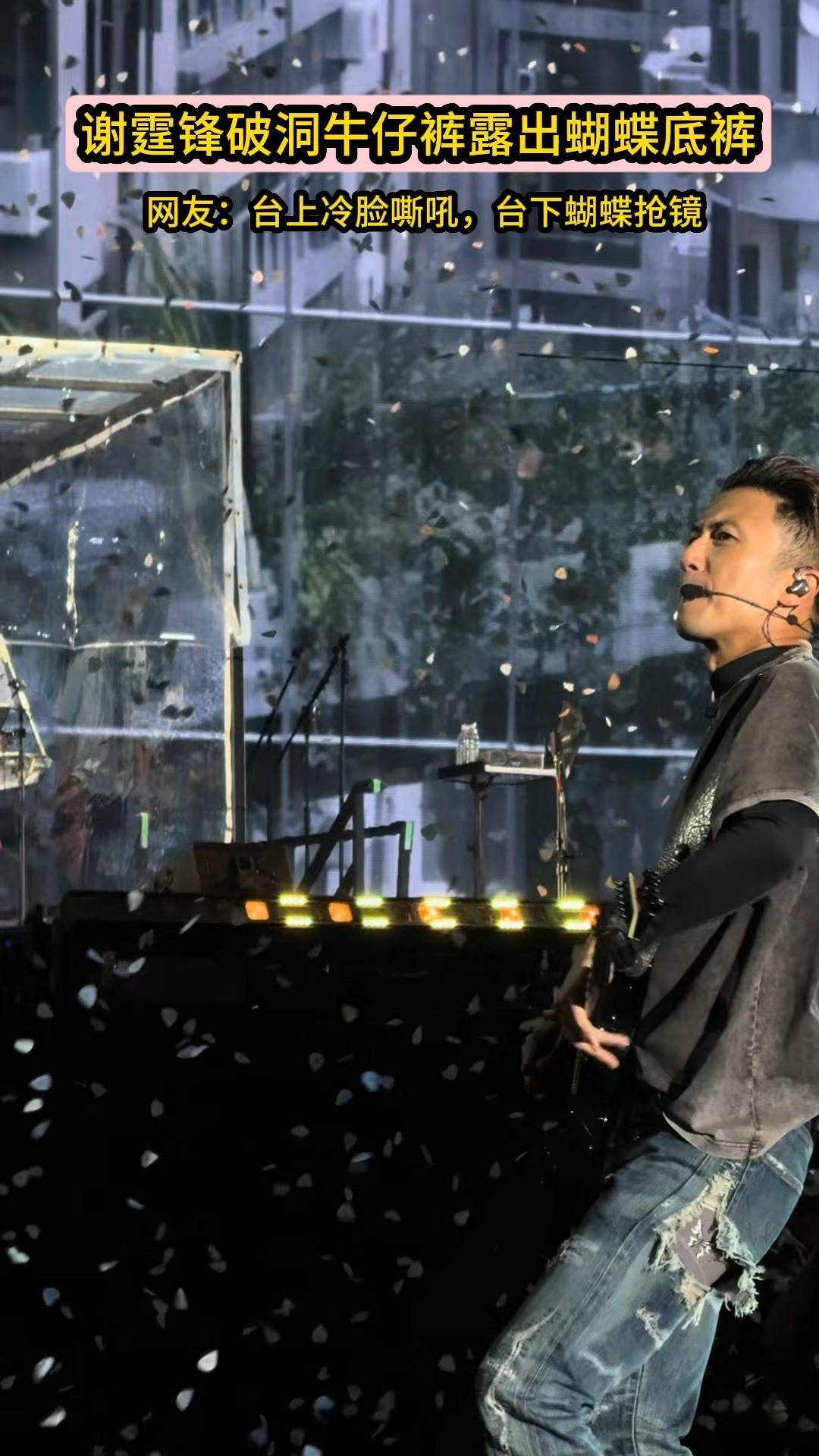 服装造型同样引人关注。上衣印有由多个文字组成的蝴蝶翅膀图案,中间的标志代表蝴蝶躯体,演出过程中,漫天的蝴蝶元素缓缓落下,与整体舞台氛围相呼应。高清镜头下,破洞牛仔裤的设计意外露出带有玉蝴蝶图案的底裤,这一细节迅速成为讨论焦点,引发人们对背后故事的好奇。