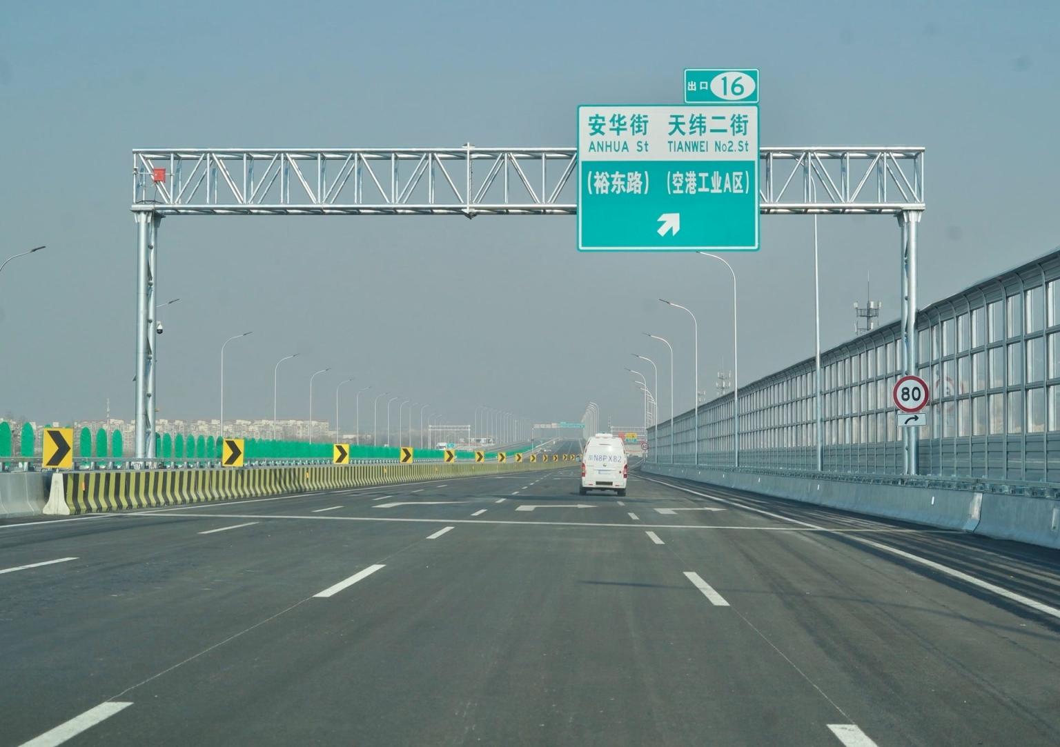 此前,新国展段辅路已于今年5月15日通车,京平高速(机场南线)至天北路主路约3.7公里已于10月25日通车。此次通车的天北路至安华街段主路长1.7公里,同时将新建辅路向北延伸0.5公里至安宁大街,避免高速出口的车流造成交通拥堵。